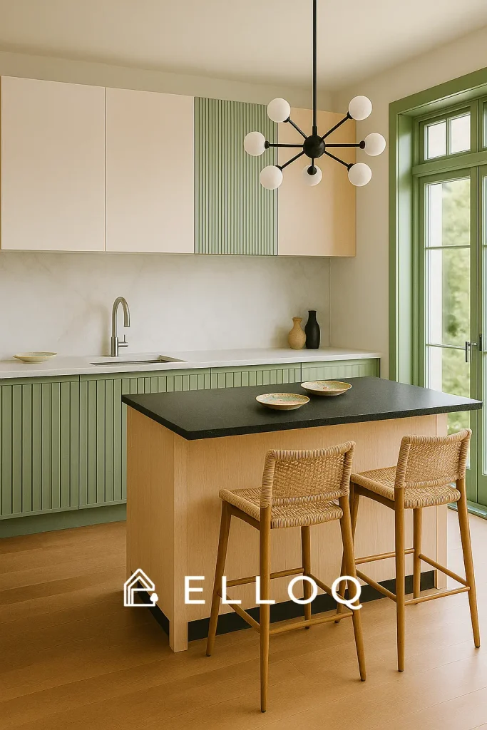 Meskipun dapur minimalis seringkali dikaitkan dengan garis-garis lurus yang bersih bukan berarti itu harus didesain tanpa pola sama sekali. Mulai dari panel-panel vertikal hingga ubin geometris, tak ada larangan untuk menambahkan pola-pola sederhana sebagai aksen. Lagi-lagi semua akan sempurna saat tidak dilakukan secara berlebihan.